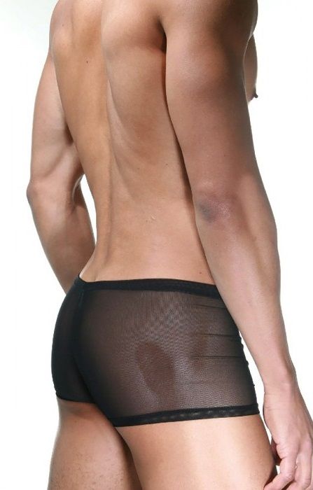 Черные полупрозрачные боксеры для мужчин, с розовой плотной вставкой в области гениталий.