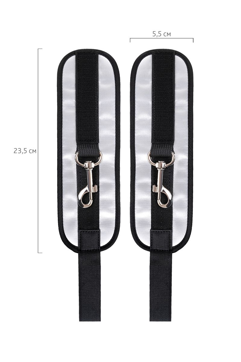 Наручники — классический предмет для игры в подчинение, обязательный для начинающих и опытных поклонников БДСМ. Блестящий во всех смыслах аксессуар для ограничения свободы: сатиновый материал поблескивает, когда на него падает свет. Необычное сочетание серебристого и черного, совсем нехарактерное для классического исполнения аксессуаров в стиле БДСМ, придает изюминку и новизну. Подчиненный с таким аксессуаром выглядит неотразимым. Застежка велкро позволяет зафиксировать руки любого размера. Между собой наручники скрепляются карабинами, практически не оставляя свободы действий. Никакого послабления, только полное подчинение своему Доминанту, где бы ни были зафиксированы руки: впереди или за спиной. Используйте дополнительно цепочку для расширенных возможностей фиксации положения рук. Начните игру в подчинение с этим аксессуаром, и вы поймете, как развивать свою чувственность с помощью ограничения свободы одного из партнеров. Ширина - 5,5 см. Длина сцепки - 8 см.