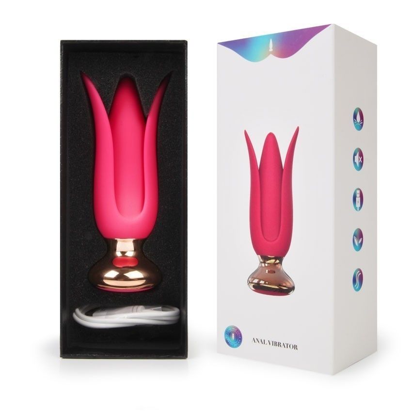 Розовая анальная вибровтулка с лепестками. 10 режимов вибрации. Рабочая длина - 9,5 см.