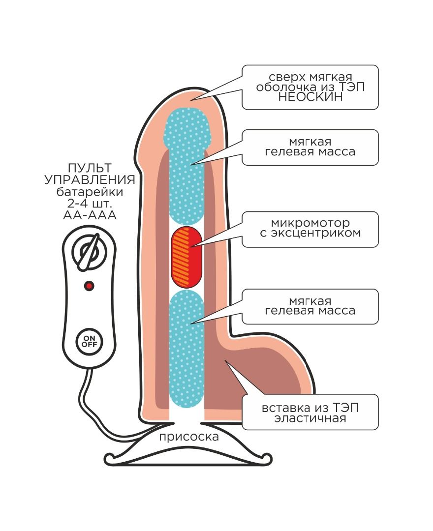 Особенность этой модели – большая жесткость и толщина. Снабжена вибратором с управлением через пульт на микросхемах. 10 режимов вибрации. Модель(копия) имеет реальный мужской прототип. Достаточно рифленая поверхность, увеличенная толщина и большая упругость модели предназначена крупным женщинам с емким влагалищам при позе сверху, когда присоска крепится на какую-то гладкую поверхность (дно ванны, например). Эту модель можно рекомендовать крупным женским парам. Мягкая головка легко трансформируется под форму купола влагалища и способствует наступлению вагинального оргазма при задействовании точки G. Эластичность фаллоимитатора рассчитана так, чтобы избежать травмы даже при сильном оргазме. Эта модель более жесткая, чем прочие в линейке, поэтому советуем сравнить и выбрать подходящую. Крупные округлые яички (мягкие снаружи и жесткие внутри) позволяют стимулировать преддверие и клитор. Обычно берут рожавшие женщины. Часто приобретают как дополнительную насадку на пояс, снабженным фиксирующим кольцом. Мы выпускаем такие модели с возможностью любого варианта фиксации фаллоимитатора. Фаллос на полужестком каркасе, покрытом нежным материалом - неоскин. Равномерная гибкость в верхней трети с повышенной эластичностью и с постепенным нарастанием упругости к присоске. Изготовлено с использованием технологий протезирования. Рабочая длина - 17 см.