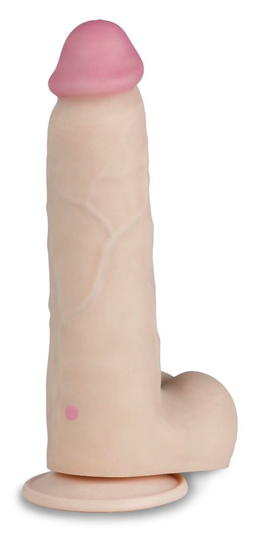 Реалистик с вибрацией на присоске. Встроенный литий-ионный аккумулятор, заряжаемый практически от любого USB разъема. 12-скоростной механизм управления вибрацией. Изделие обладает гибкостью и упругостью, приближено по тактильным ощущениям к биологическому прототипу. Вибрационный механизм находится внутри упругого корпуса, который в свою очередь покрыт сверхмягкой оболочкой из материала неоскин. Индикатор зарядки просвечивает сквозь материал и находится рядом с кнопкой включения-выключения. Надавливанием и удержанием этой кнопки в течение 3 секунд механизм вибрации включается и выключается. Кратковременное нажатие кнопки меняет режим работы. Шнур имеет штырек, который вставляется в основании изделия (в области мошонки). Кабель с коннекторами входит в комплект изделия. Время зарядки составляет 30-60 минут, при этом индикатор гаснет. Рабочая длина - 17 см. Диаметр головки - 2,5 см.